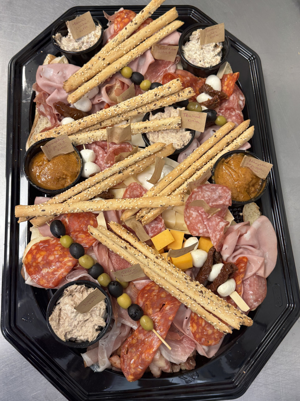 pecorino sajt,burrata,mozzarella,grana padano,vörös cheddar,kecskesajt,vegyes olivabogyó,aszalt paradicsom,