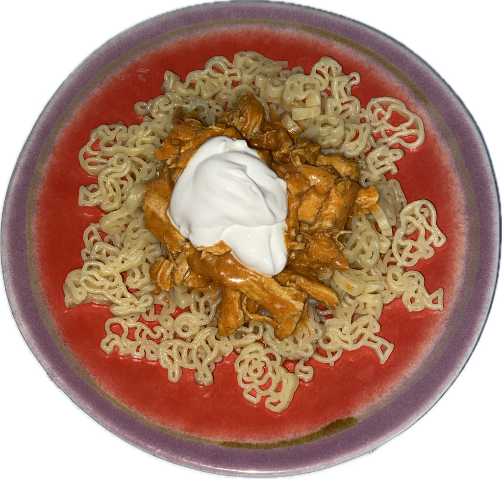 állatfigurás durum tészta,csirkemell pörkölttel.