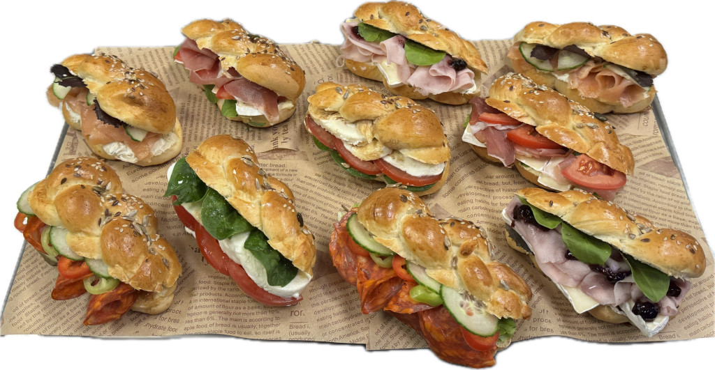 Helyben készített friss sós fonott kalácsban mely magvakkal van szórva: