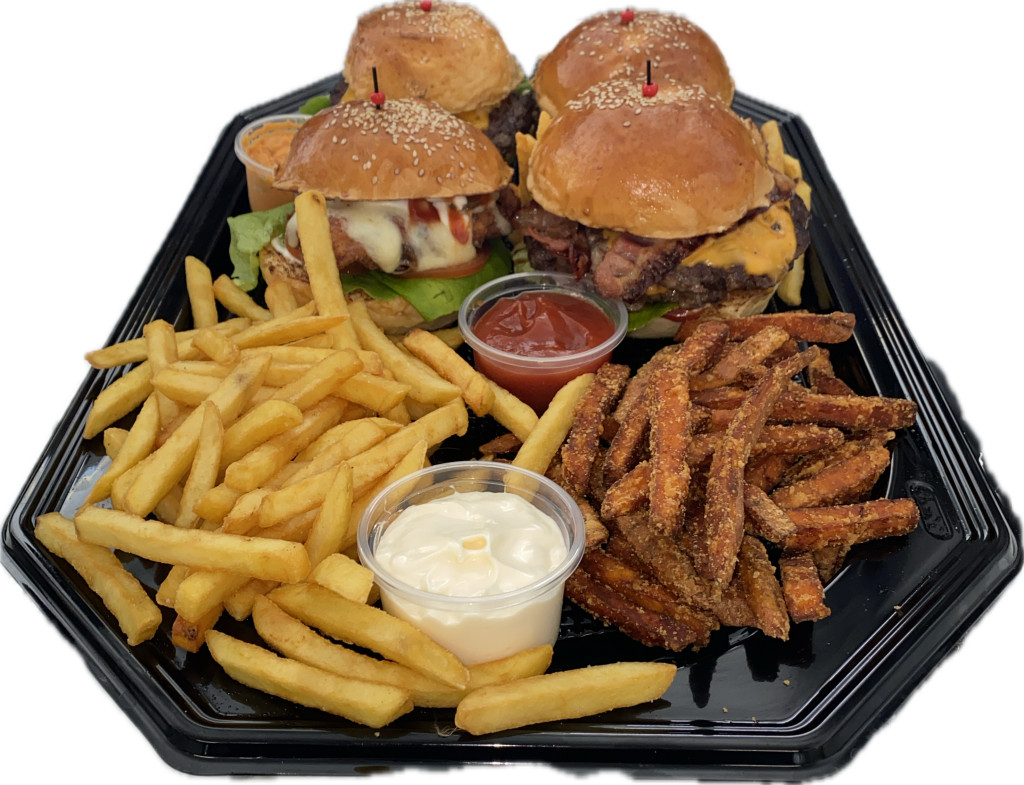 2db sajtburger,1db dupla baconburger,1db CrispySpecial Chicken burger,2adag hasábburgonya,