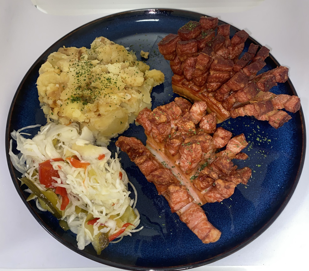 sörben pácolt sült malac császár,hagymás törtburgonyával,csalamádéval.