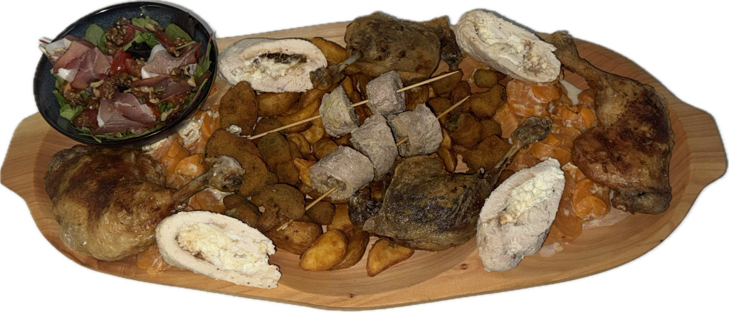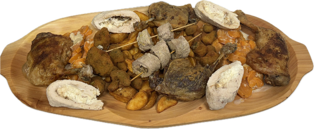 2db narancsos-mázas sült omlós csirkecomb,4db sörrel kent sült porchetta,1adag rántott brokkoli,