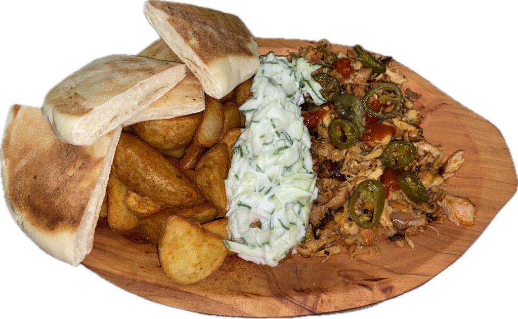 Lángoló gyroshús:szaftos gyros melyet skorpió chili páccal sütünk,sült jalapeno karikák,tüzes steakburgonya chili pehellyel szórva,