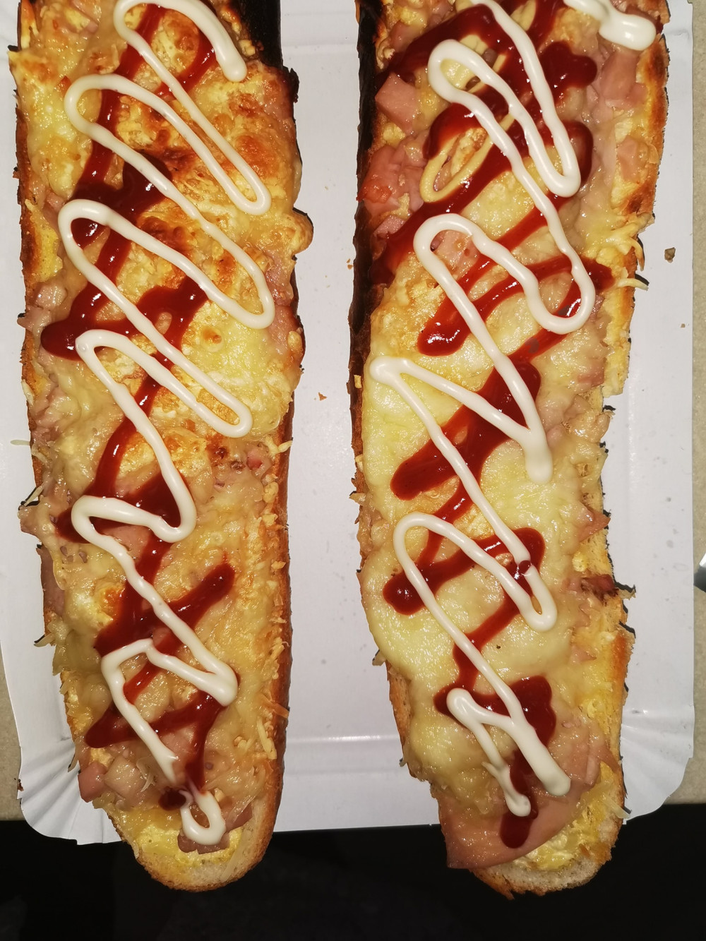 bagettből készült melegszendvics(2db) csípős kolbásszal,sajttal