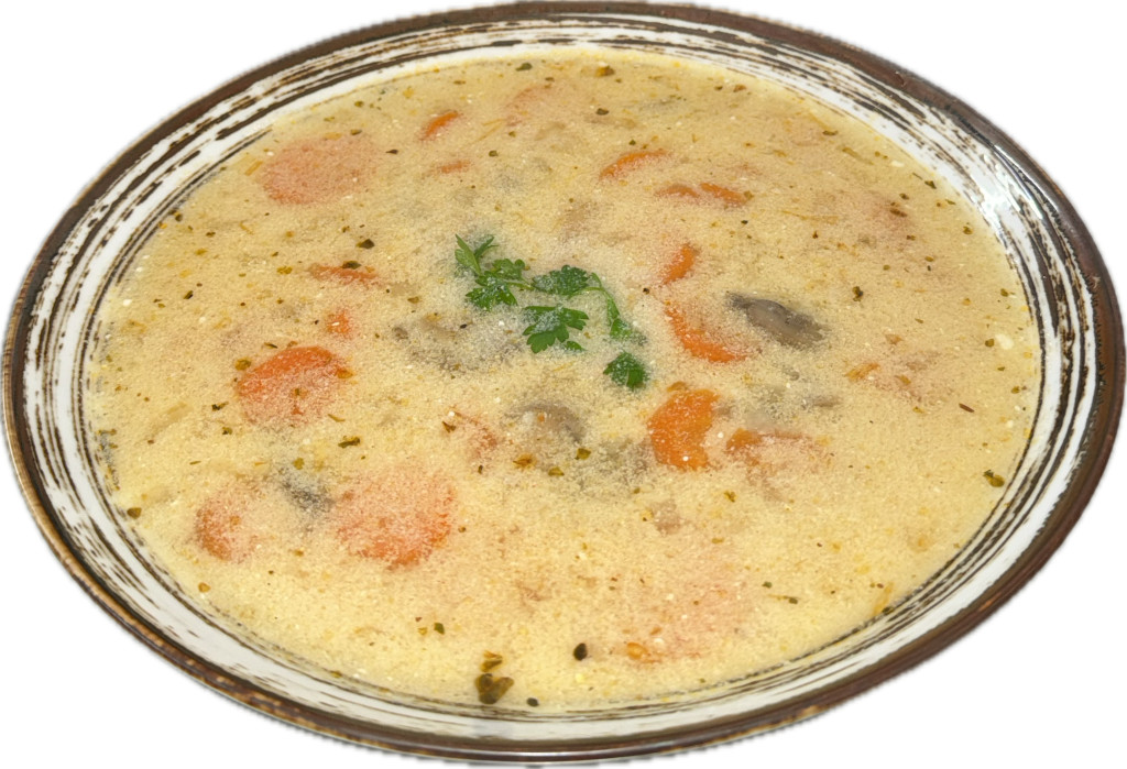 Sertéscomb,sárgarépa,vöröshagyma,fehérrépa,gomba,velő,tejfölös habarás.