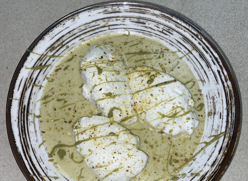 Pisztácias tejmadarak, pisztáciás mascarponéval keverve, pisztácia szórással 1l.