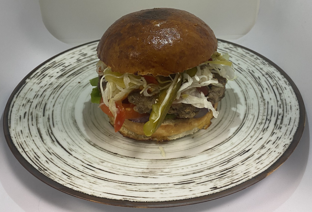 házi buci,zöldségek,friss szürkemarha hús(160g),ketchup,mustár,majonéz,csalamádé
