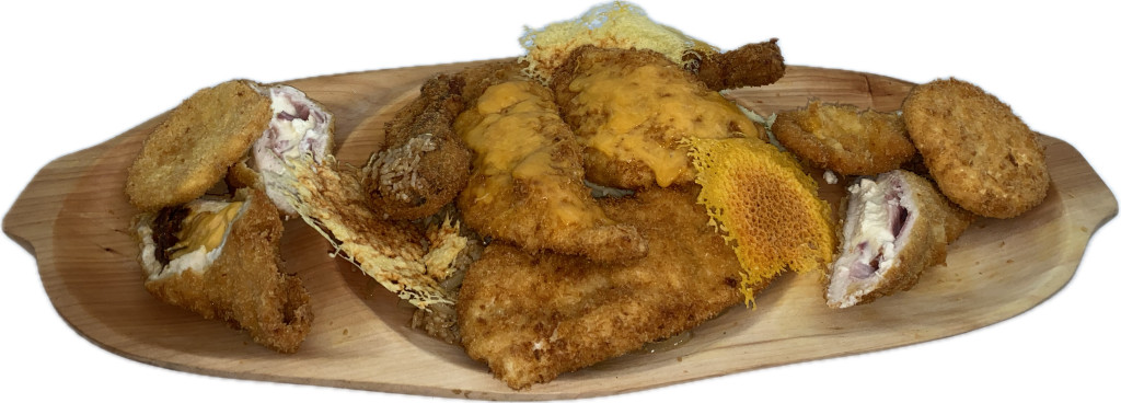 pankóban,2db tarjával-juhtúróval töltött csirkemell pankóban,4db pankós pikáns dobverő,2db pankóban rántott camembert,
