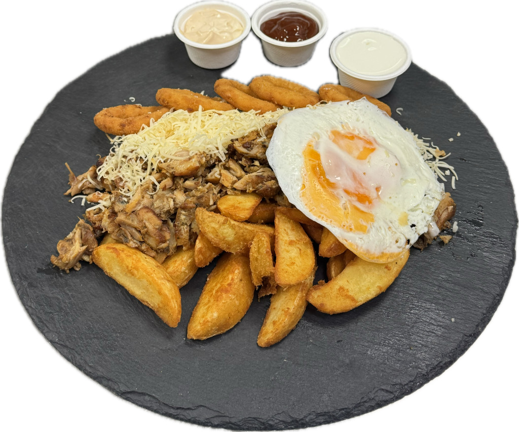 steakburgonya,extra gyroshús,rántott hagymakarika,füstöltsajt,tükörtojás,joghurtos öntet,80ml bbq szósz,
