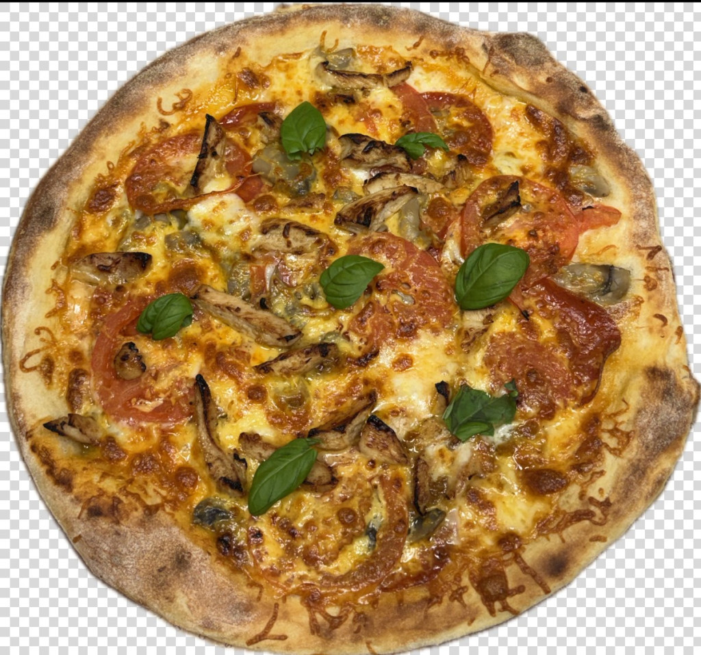 Cheddar sajtos alap,spianata(olasz pikáns szalámi),paradicsom,narancsos csirkemell,vöröscheddar,mozzarella,bazsalikom